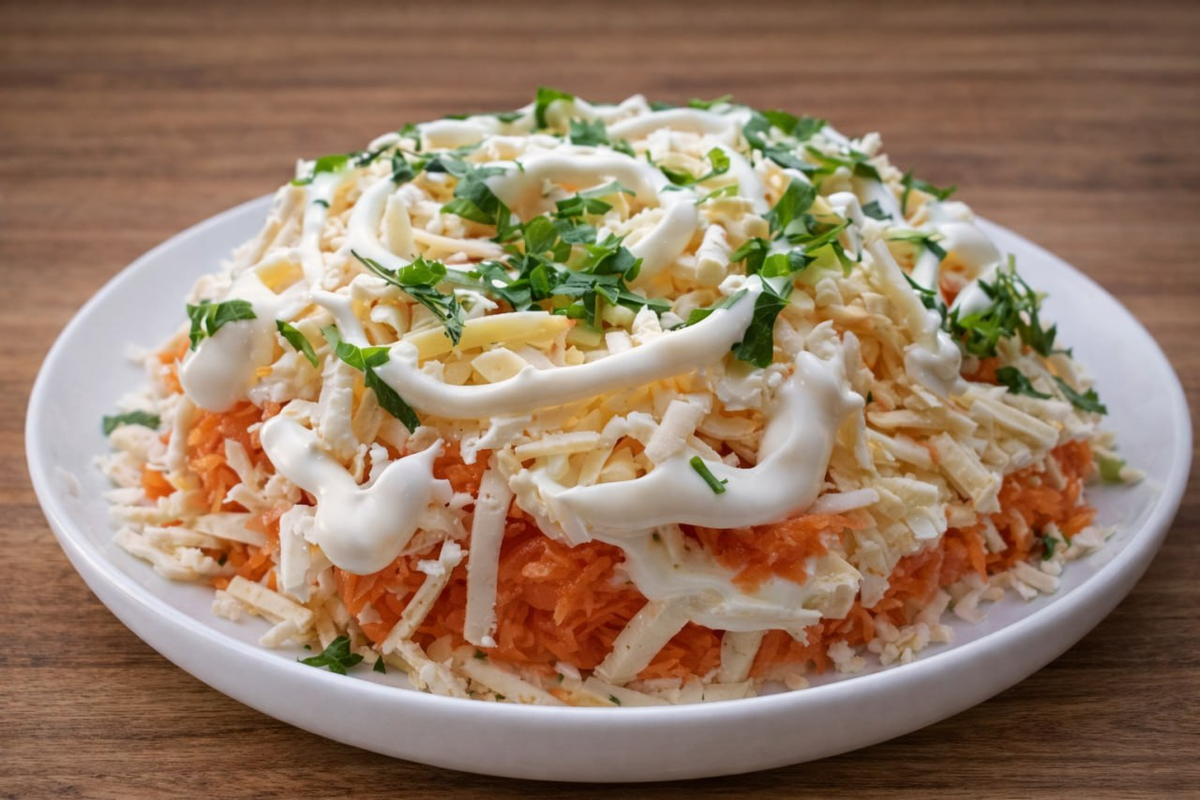 Во время сборки важно не спешить и тщательно распределять майонез, чтобы избежать излишней тяжести. Рекомендуется дать салату постоять в холодильнике минимум 15–20 минут: за это время слои «подружатся», а вкус станет еще гармоничнее.