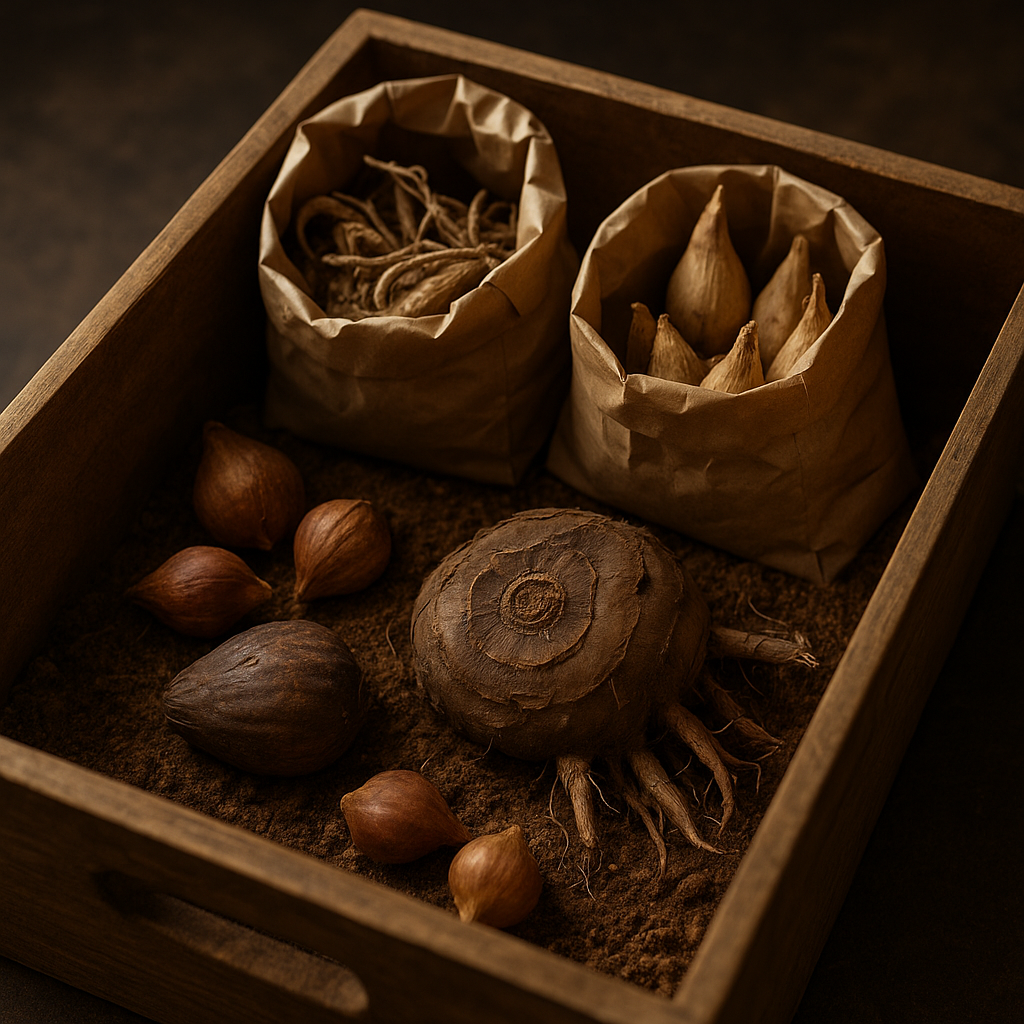1. **Клубнелуковичные**. Гладиолусы и георгины — настоящие спящие красавицы. Хранить их следует в бумажных пакетах при температуре +3…+7 °C в тёмном месте. В темноте они сохраняют свою структуру и не прорастают преждевременно.