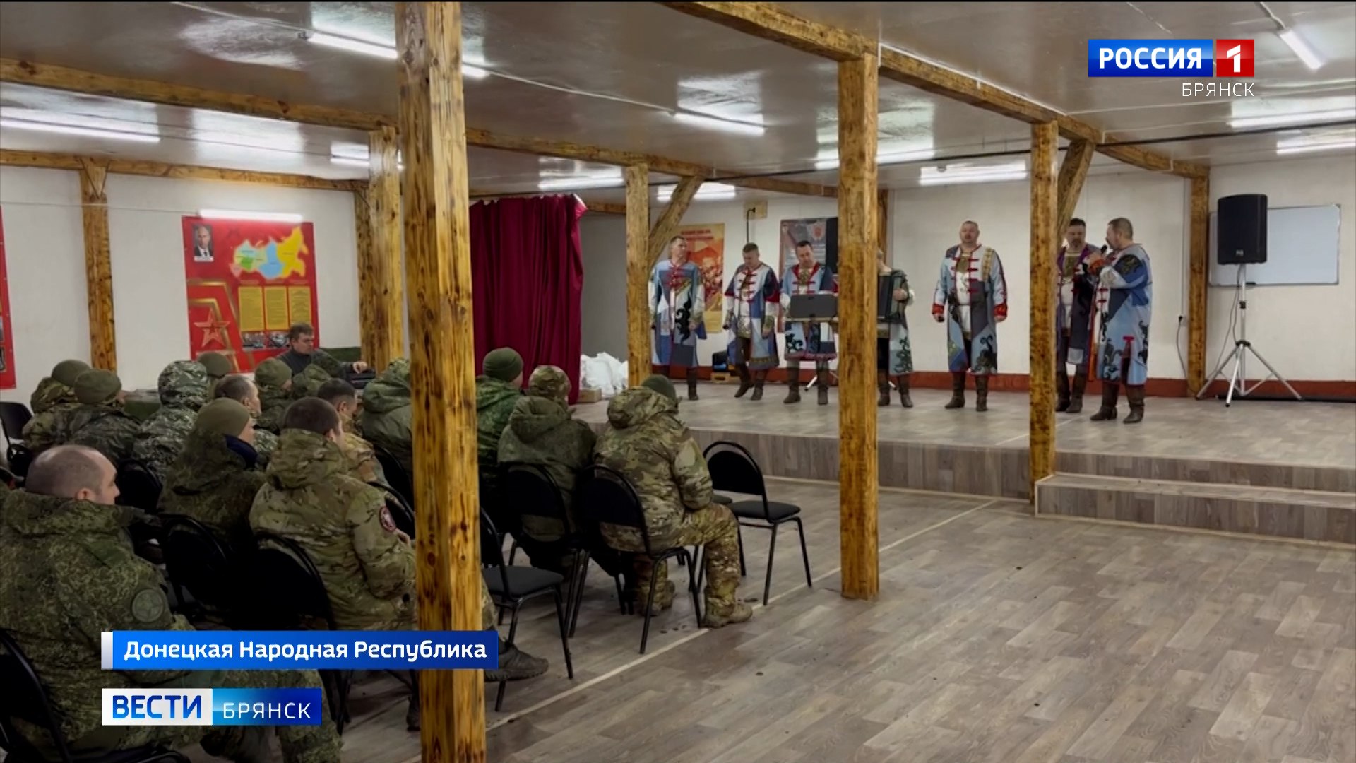 Брянский ансамбль "Ватага" поздравил бойцов "Пересвета" в ДНР с прошедшими праздниками