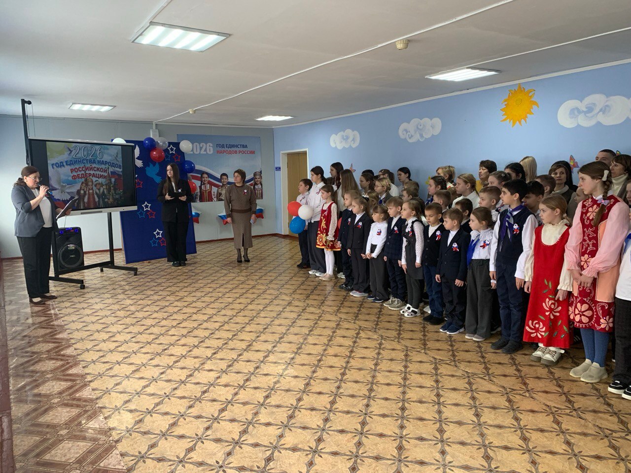 С напутственными словами выступила директор школы Мамонова Наталья Васильевна. Она поздравила всех с открытием Года единства народов России и отметила важность мероприятий, направленных на воспитание чувства патриотизма, уважения к культуре и традициям всех народов России. Ведь единство-это не просто слово, это наше общее дело, наша общая ответственность. Сила России – в ее многообразии и единстве народов!