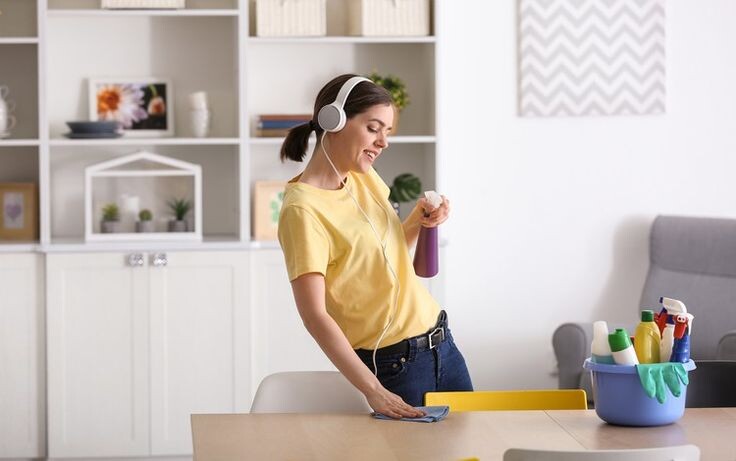 Вспомните, как в 80-х годах процветала аэробика. Энергичные танцевальные движения под ритмичную музыку дарят отличное настроение и помогают сжигать калории. Почему бы не адаптировать этот подход для уборки? Убрать квартиру под любимые треки — это ли не радостная идея?