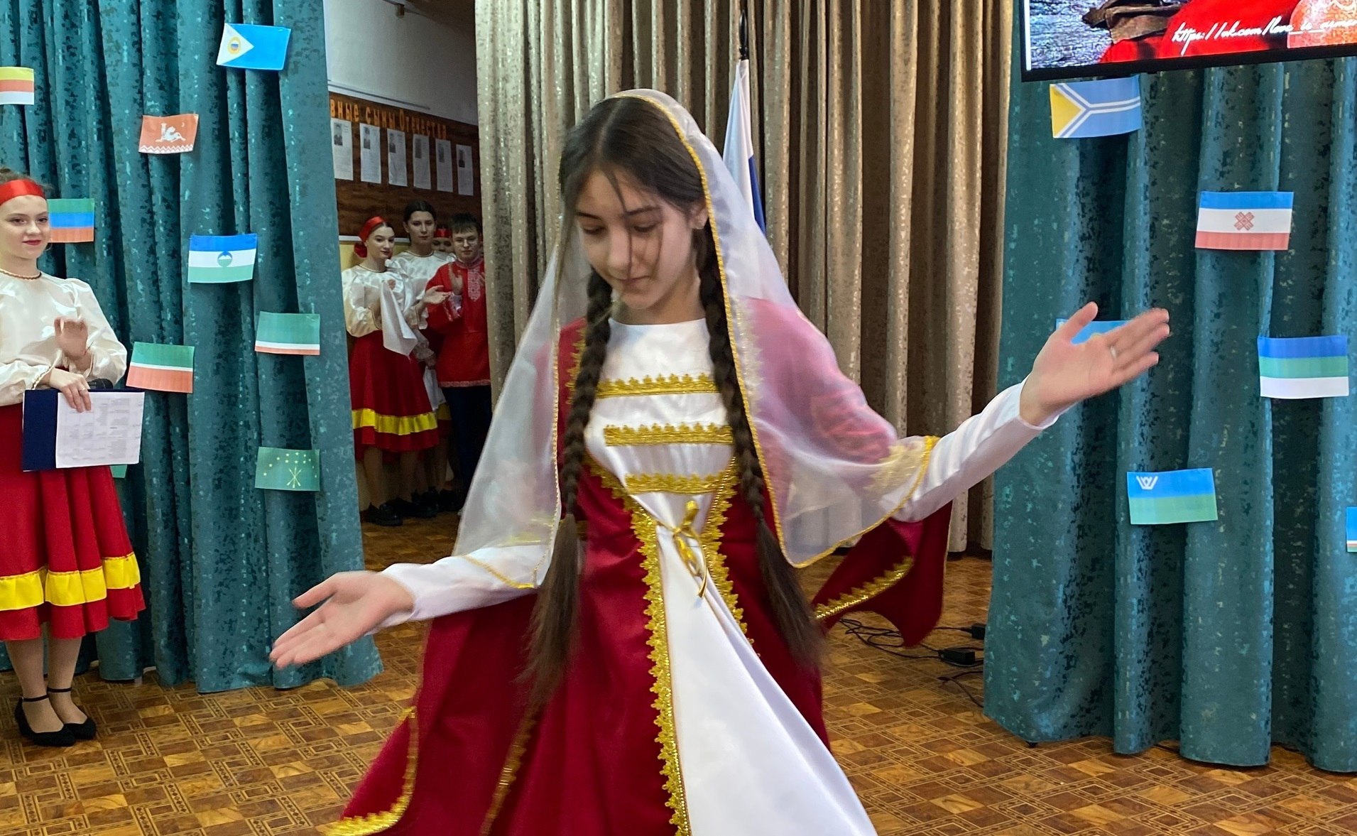 -Выступление участников в национальных костюмах и демонстрация национальных традиций.