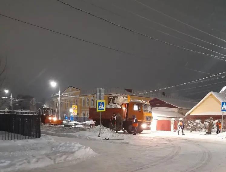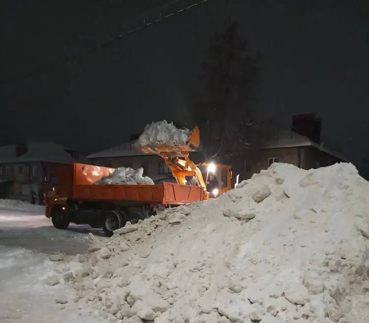 С улиц города продолжается вывоз снежных сугробов. Прошлой ночью работы велись на улицах Иванова, Октябрьская, Луначарского, Попова, Транспортная и Первомайская.