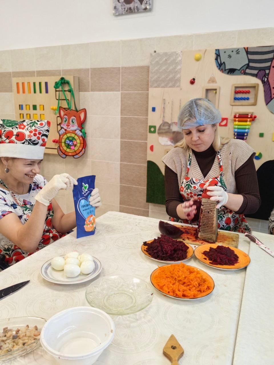 Для подопечных Дарковичского дома социального обслуживания был проведен кулинарный мастер-класс по приготовлению блюда "Сельдь под шубой".