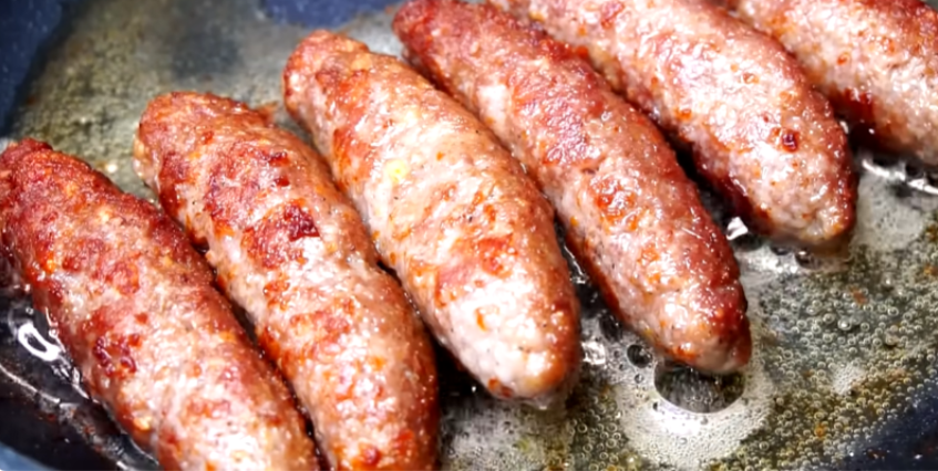 Готовые колбаски должны быть румяными, а мясной сок при проколе должен быть прозрачным.