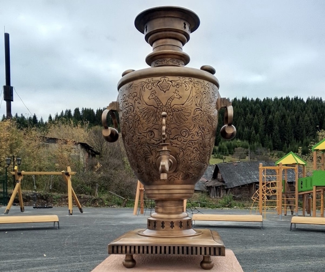 В селе Нижнеиргинском Свердловской области открыли бронзовый памятник самовару, который стал настоящей гордостью местных жителей. Высота этого арт-объекта составляет чуть более одного метра, а вес достигает почти 200 килограммов.