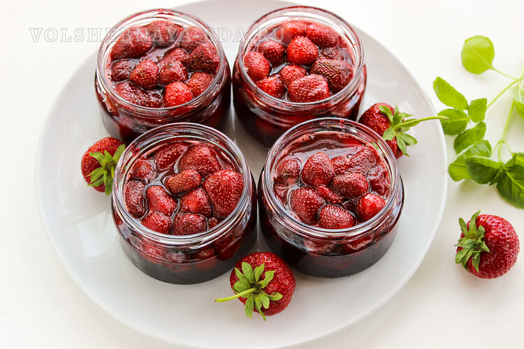 Клубнику очищают и промывают, затем отправляют в кастрюлю с толстым дном и томят на минимальном огне около 20 минут, под крышкой. Важна частота перемешивания: лишь легкое движение или лёгкое встряхивание, чтобы сохранить целостность ягод.
