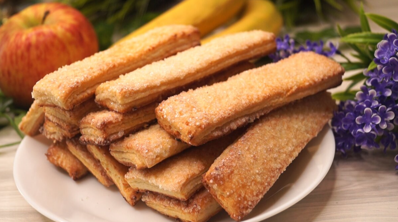 Когда тесто готово, его разделяют на части, раскатывают прямоугольниками, посыпают сахаром и складывают слоями. Затем нарезают на прямоугольники или секторные дольки и выпекают до золотистого цвета при умеренной температуре. Вкус напоминает детство и становится частым гостем на столе благодаря простоте и доступности ингредиентов.