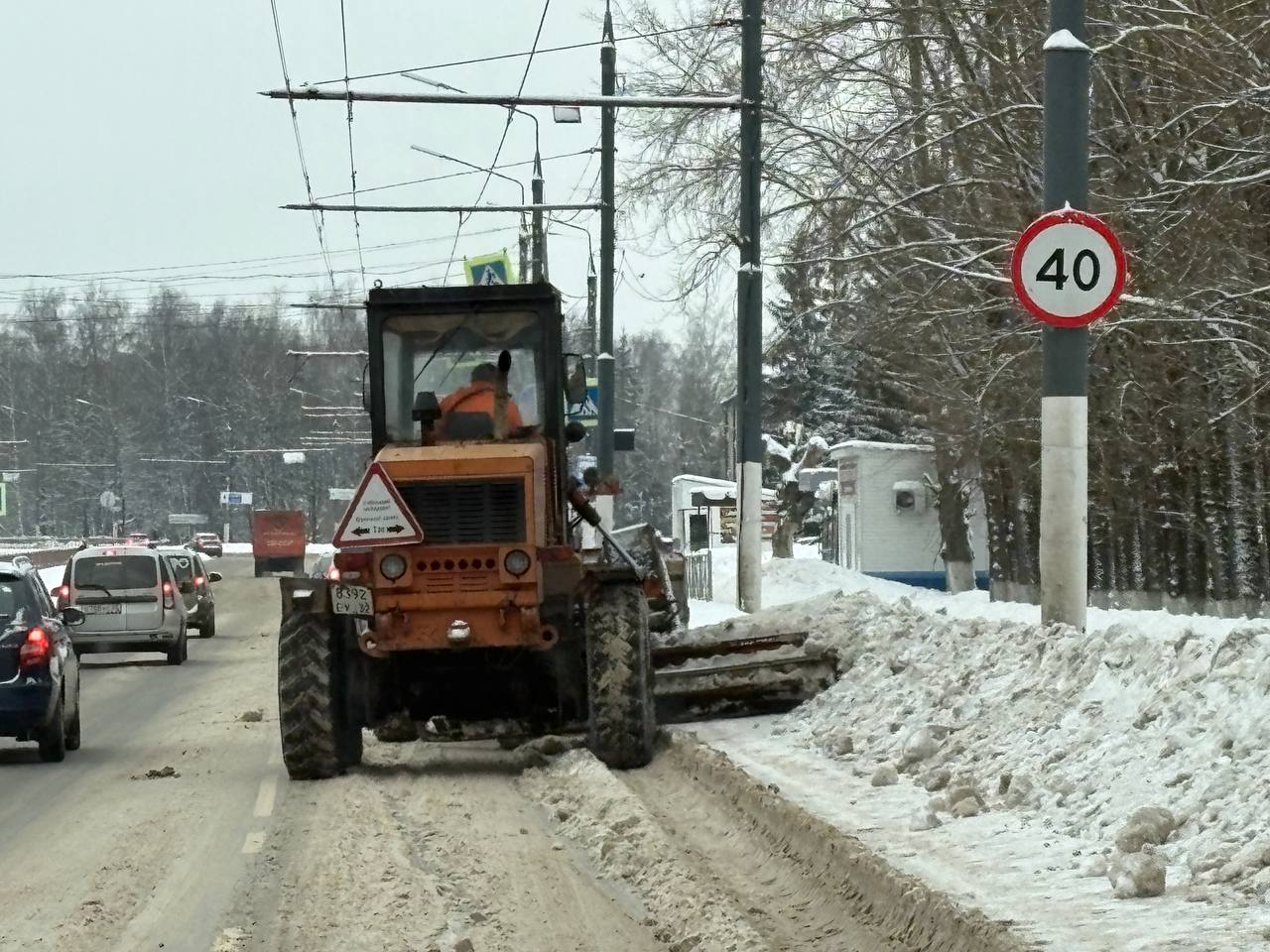 В Брянске продолжают расчистку улиц. Выведена спецтехника, работают коммунальщики. От центральных улиц двигаются ко второстепенным дорогам.