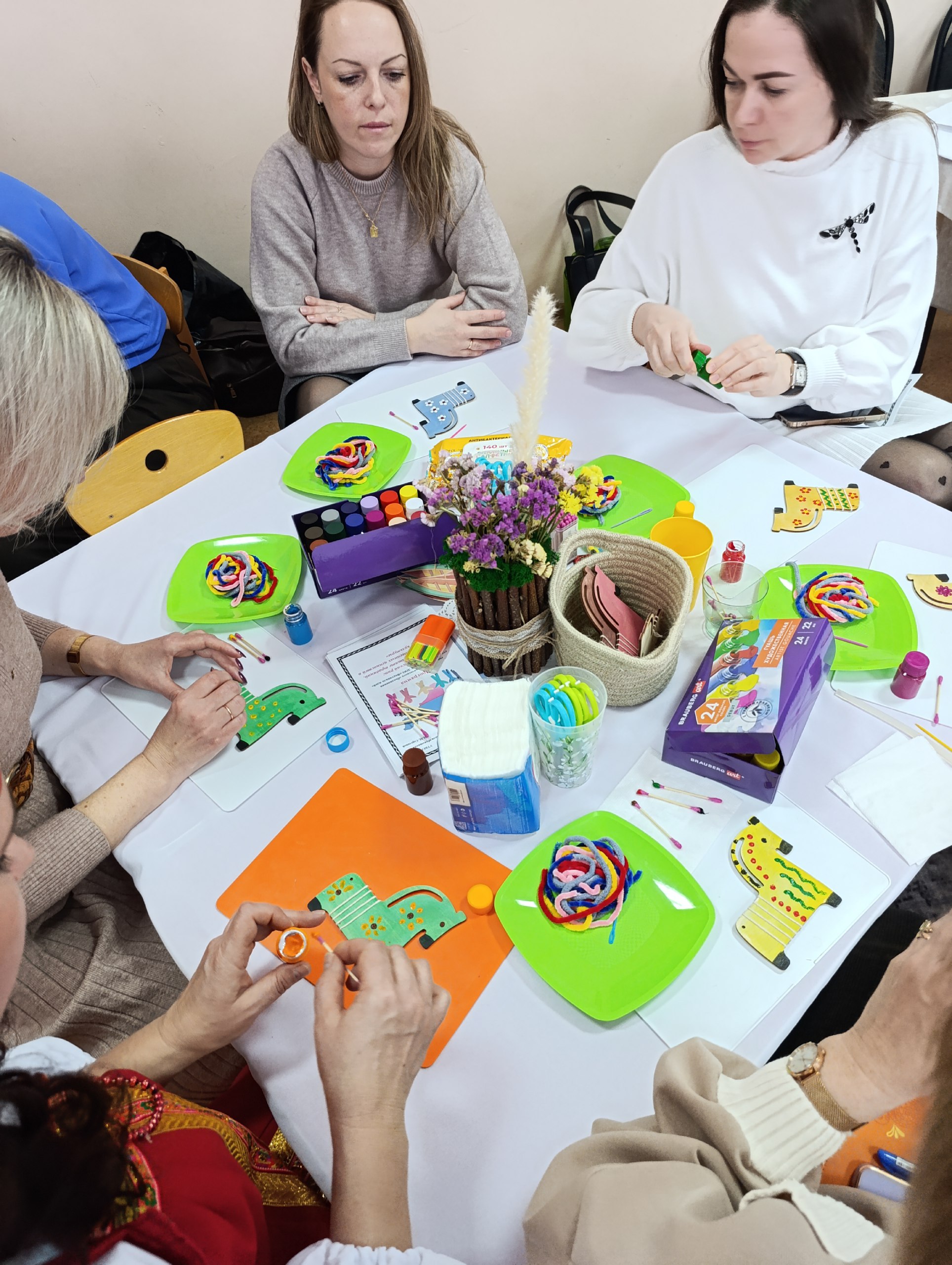 В 3 раунде «Научи, и я продолжу…» команды провели три увлекательных мастер – класса: «Конь оберег», «Волшебное солнце» и «Панно из гербария». Каждая команда показала свой уникальный подход: «Истоки» раскрыли глубину народных техник (чеканка, ткачество и создание гербария), а «ДаВинчи» дополнили их инновационными технологиями (искусственный интеллект, 3D – очки, эпоксидная смола). Таким образом, старинные ремесленные техники обрели новое звучание, благодаря интеграции передовых технологических решений.