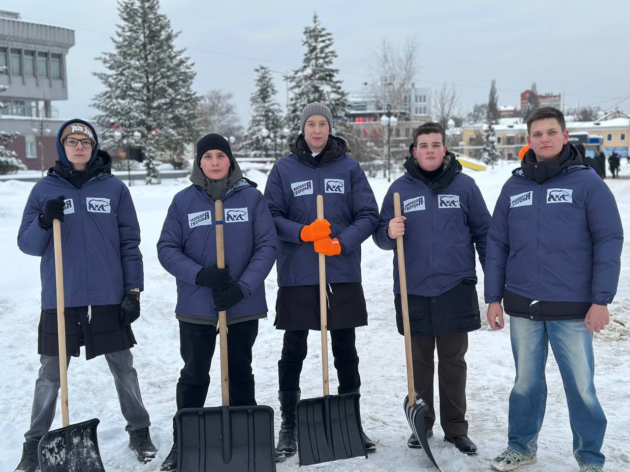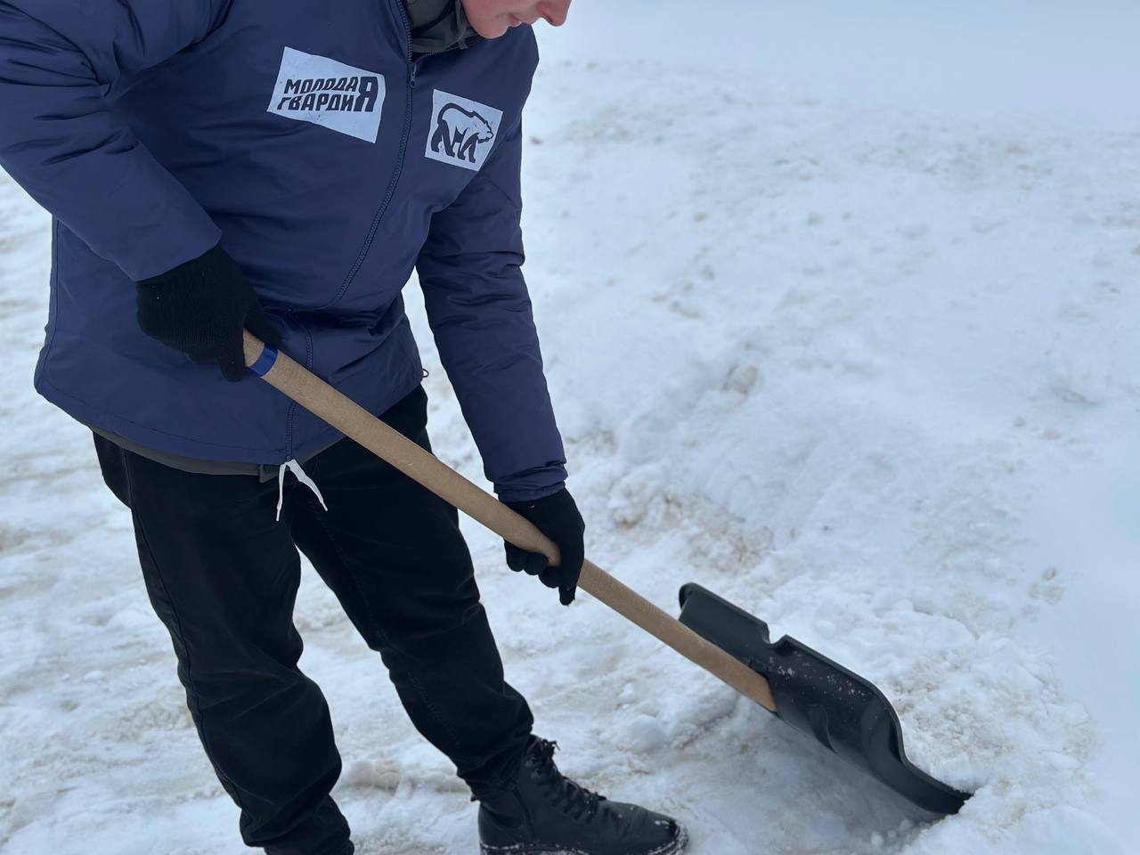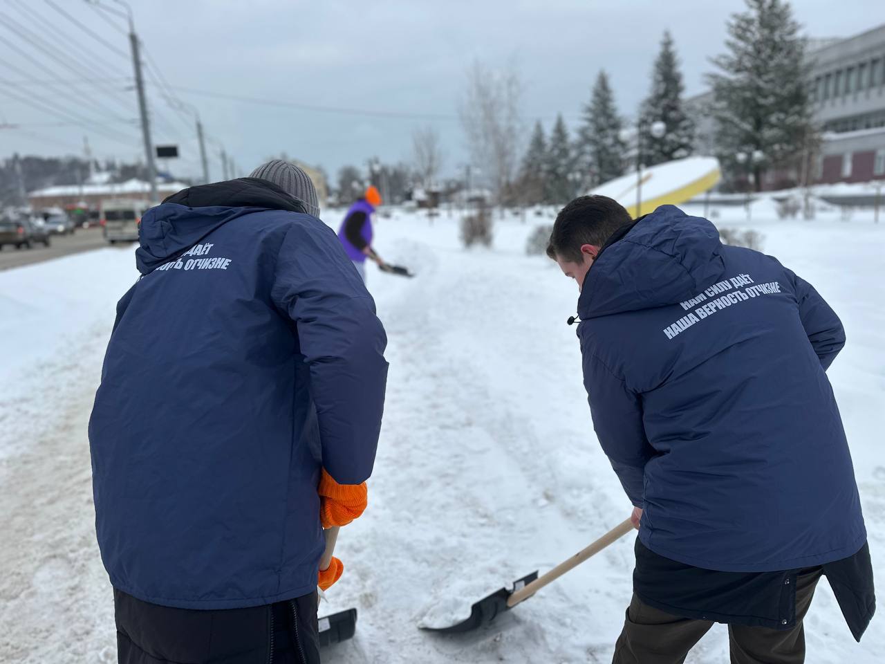 На Славянской площади кипела работа, активисты «Молодой Гвардии Единой России» совместно с молодежкой Народного фронта, Российскими студенческими отрядами и волонтерами молодежного многофункционального центра взялись за лопаты, чтобы расчистить пешеходные переходы и тротуары.