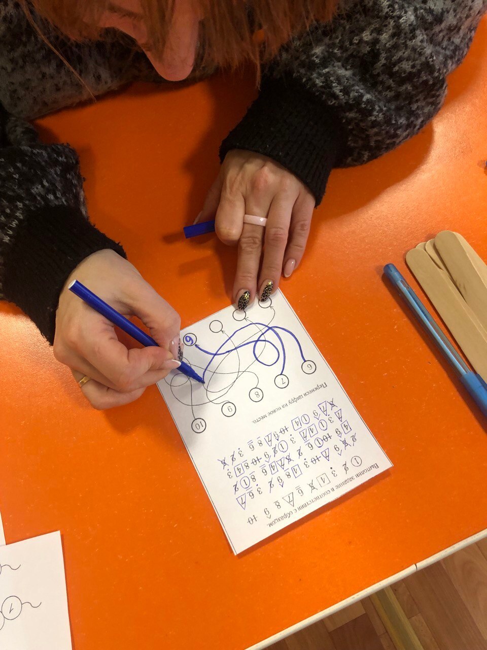 Специалист предложила родителям разнообразные варианты занимательных упражнений и игр, способствующих развитию памяти, внимания, зрительного восприятия, тактильности, облегчающих процесс запоминания цифр. Доступная краткая информация по теме так же была представлена каждому родителю в буклетах.