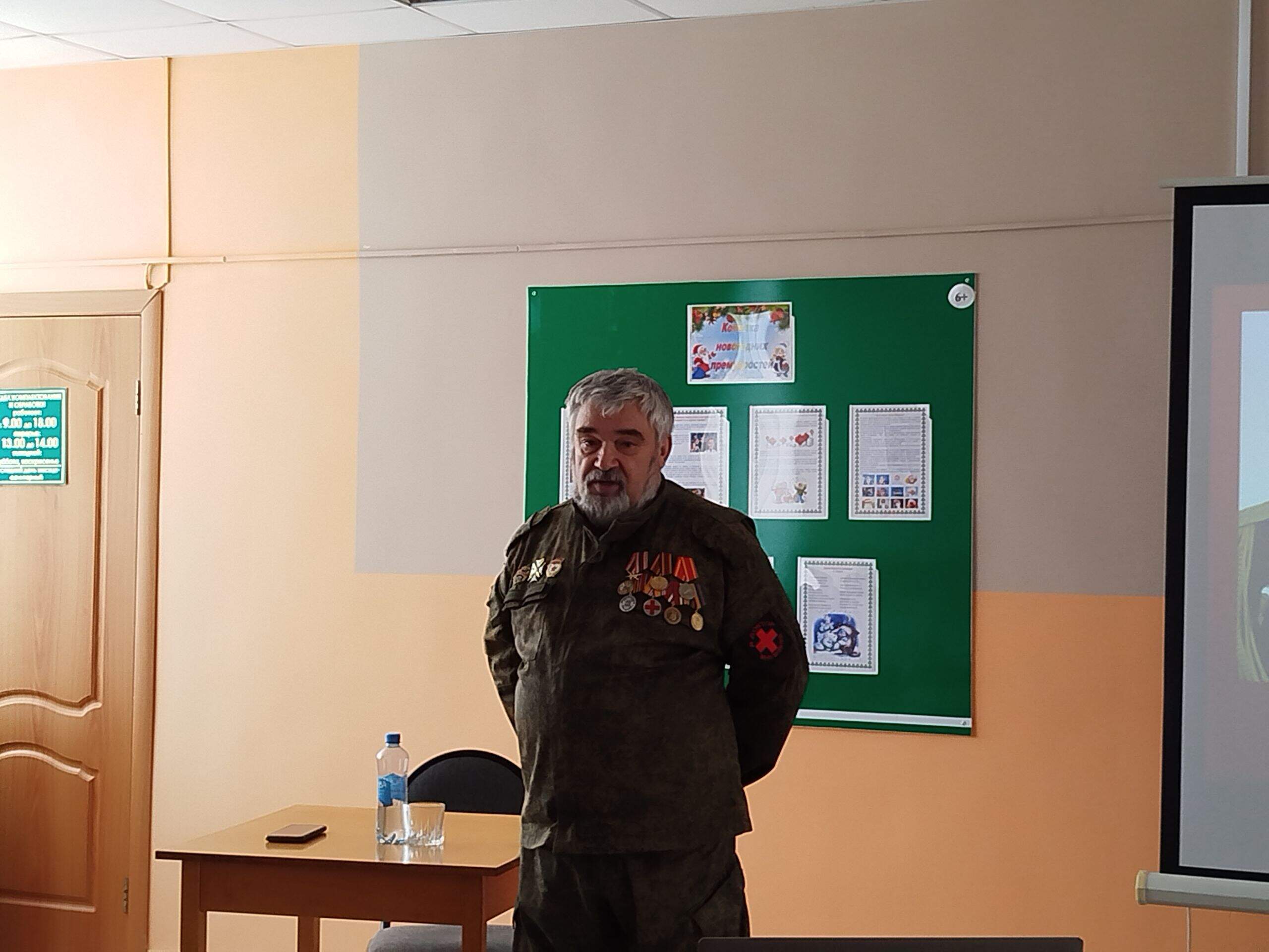 Главным гостем встречи стал Станислав Иванович Ивашков – старший лейтенант медицинской службы в отставке, ветеран боевых действий и потомственный военный. Он поделился с ребятами личными воспоминаниями о своей службе, рассказал о сложных боевых ситуациях и о том, в каких непростых условиях наши защитники выполняют свой долг.