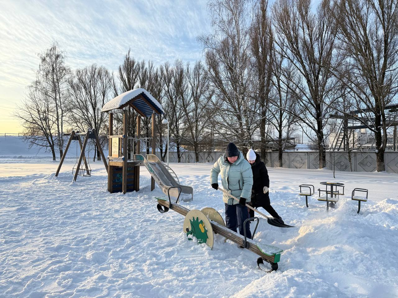 Учащиеся и преподаватели Брянского техникума энергомашиностроения и радиоэлектроники убрали снег на детских игровых и спортивных площадках, расположенных по улице Академика Королева.