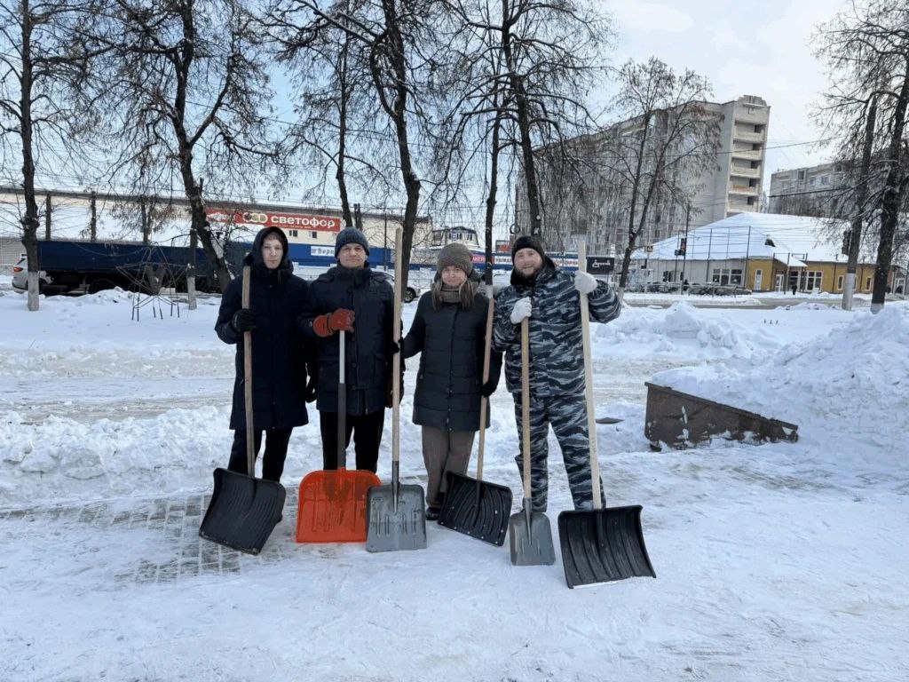 По всему городу к участникам акции «Снежный десант» присоединялись добровольцы. Люди чистили придомовые территории и тротуары, помогали дворникам.