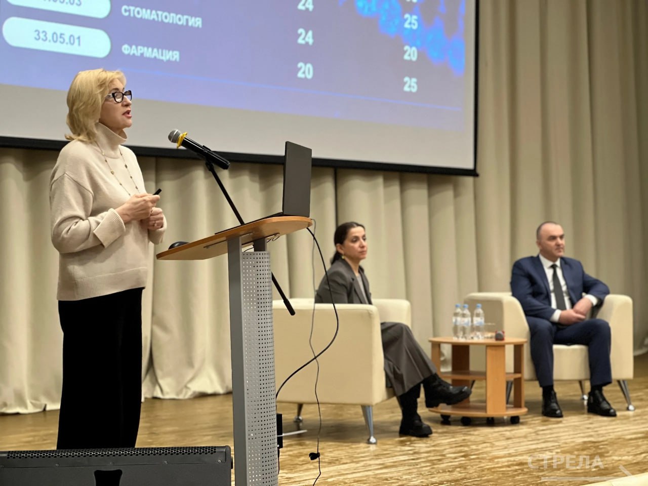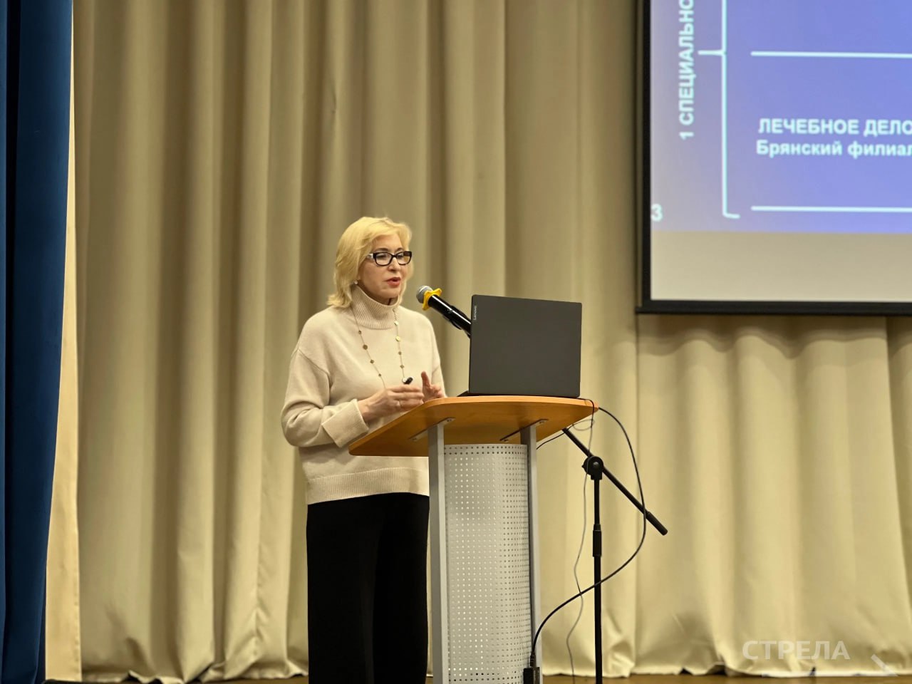 Сегодня, 30 января, проходит День открытых дверей Брянского филиала Сеченовского университета. К присутствующим в зале обратилась проректор по учебной работе Сеченовского университета Татьяна Литвинова. Встречу также посетили начальник юридической службы вуза Кристина Арсланян, заместитель директора областного департамента здравоохранения Коба Кавтеладзе.