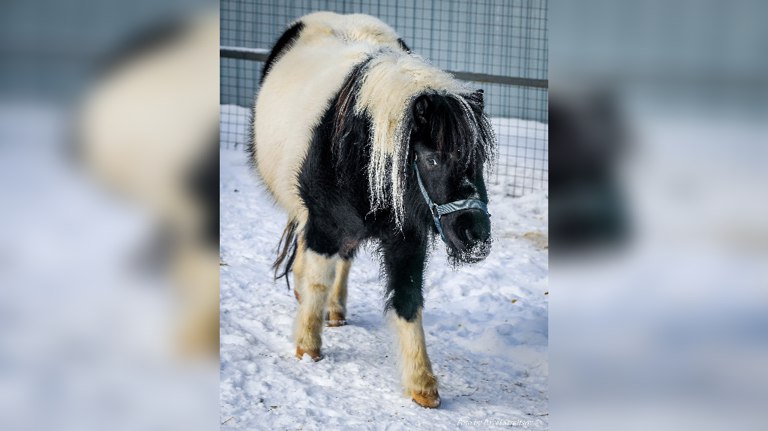 В холодный зимний день многие животные предпочитают оставаться в теплых домиках, но маленькая пони из Шетландских островов с легкостью переносит мороз и умеет завоевывать внимание гостей своим необычным поведением.