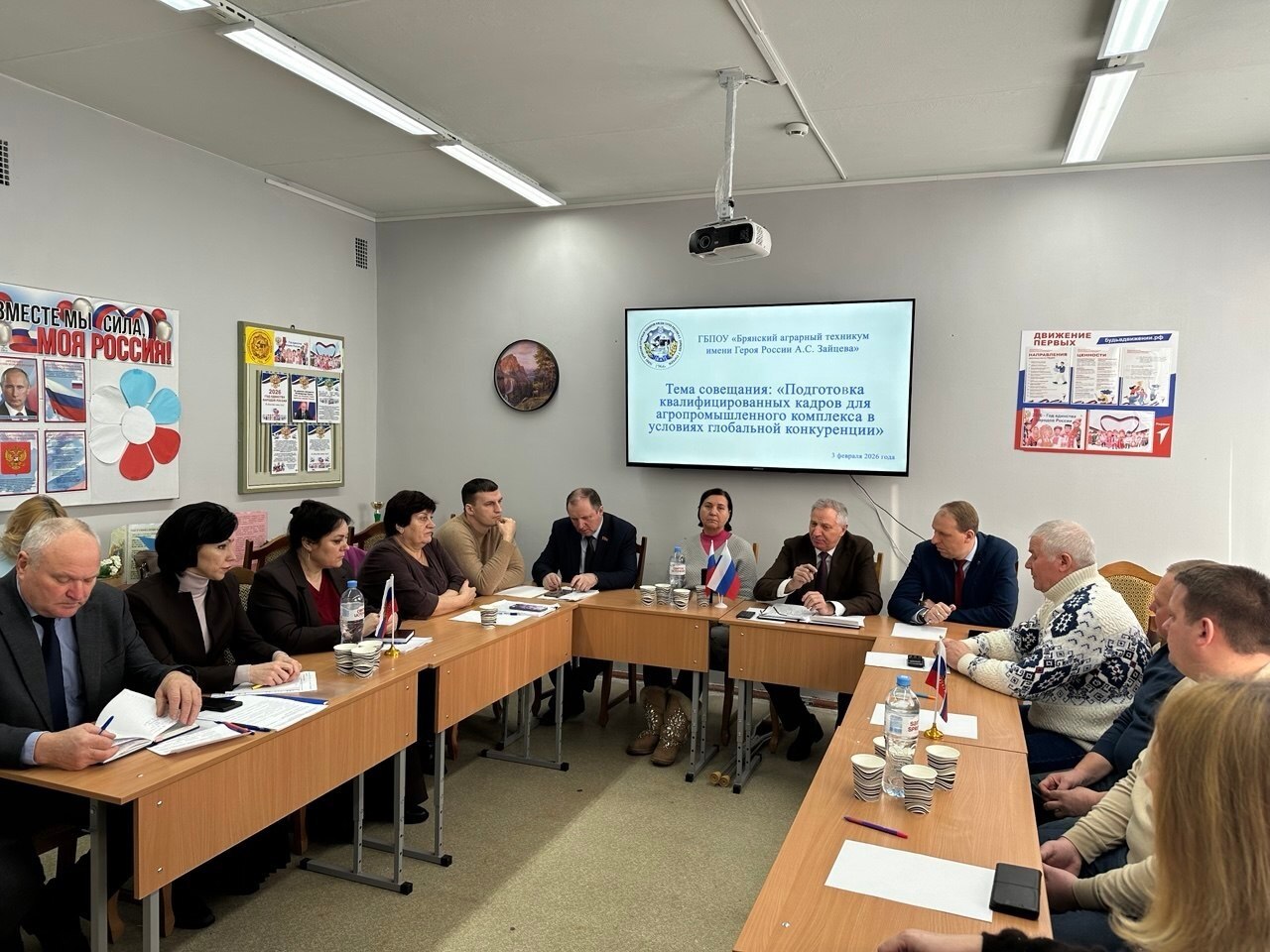 3 февраля 2026 года в ГБПОУ «Брянский аграрный техникум имени Героя России А.С. Зайцева» прошло расширенное совещание, посвящённое вопросам развития образовательного процесса техникума и укрепления связей с представителями предприятий и организаций Стародубского муниципального округа.