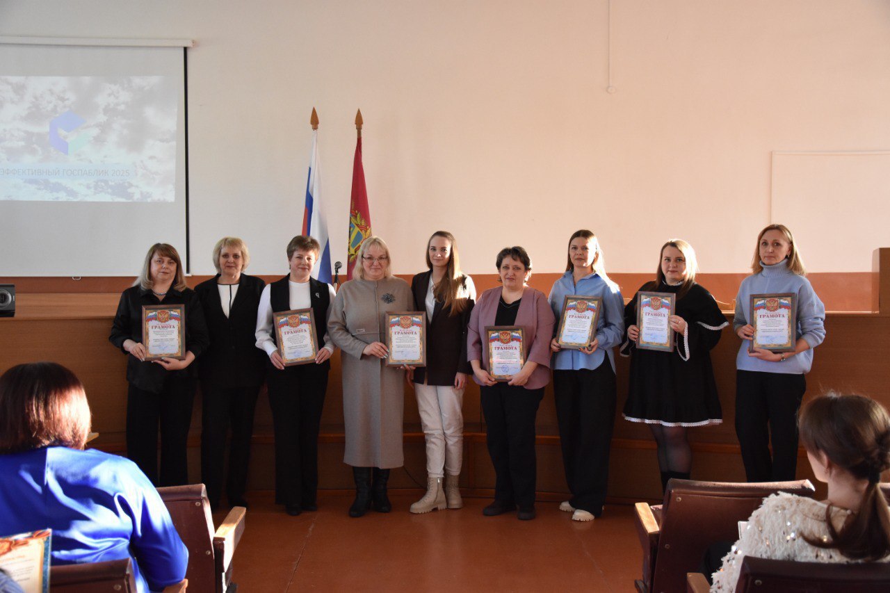 На мероприятии заместитель главы Дятьковского района, Лариса Викторовна Макласова, вручила Почетные грамоты и Благодарности за участие в конкурсе «Эффективный госпаблик — 2025».