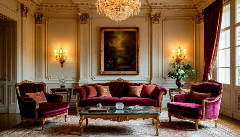 Классический интерьер погружает в атмосферу истории и традиций. Он олицетворяет стабильность и респектабельность, а его элементы легко узнать. Массивная деревянная мебель с резьбой, роскошные ткани, такие как бархат и гобелен, многоуровневые потолки с лепниной и хрустальные люстры — все это характеристики, которые выделяют классический стиль. Цветовая палитра включает глубокие оттенки: кремовый, бордовый, оливковый, золотой.