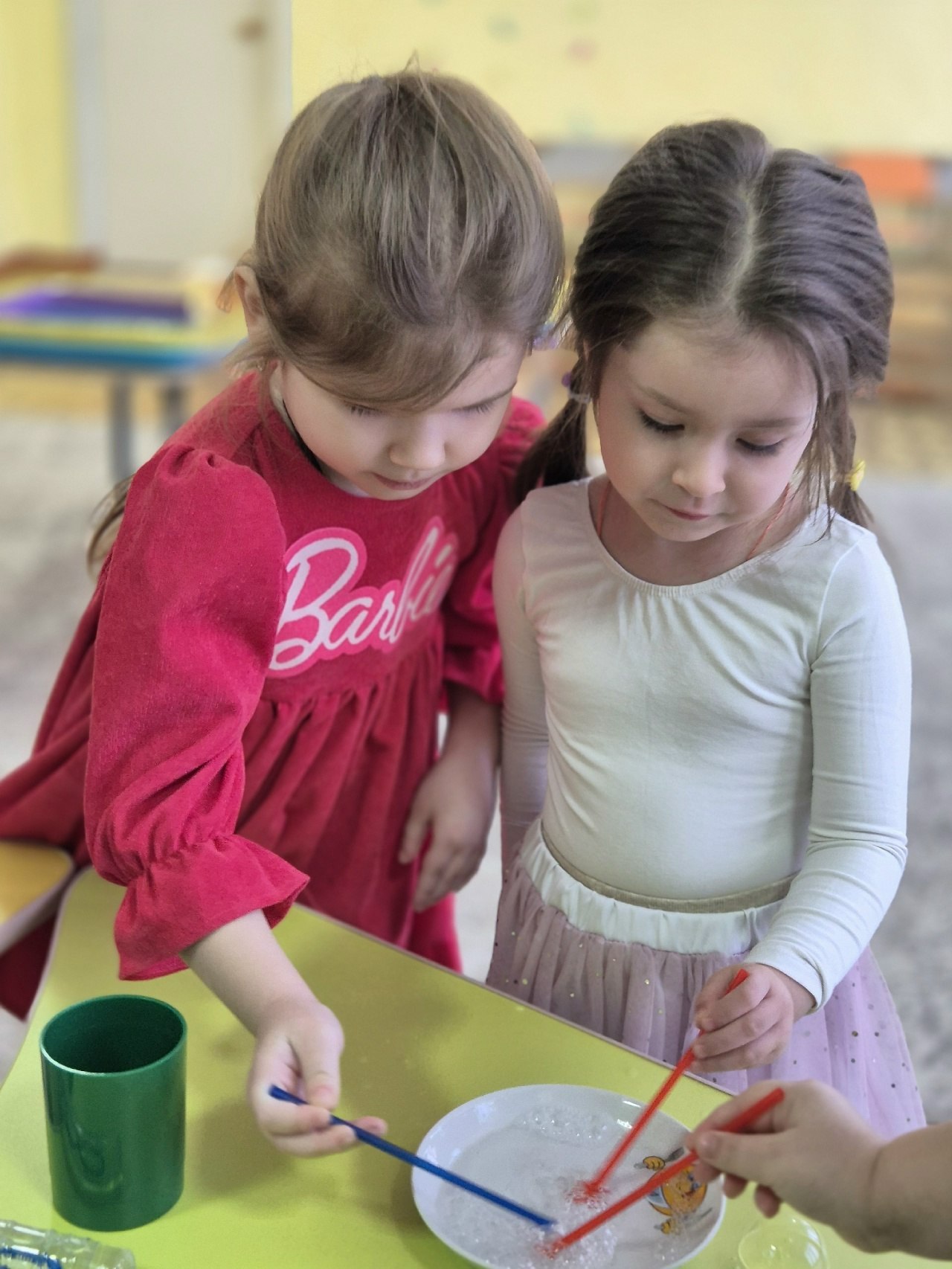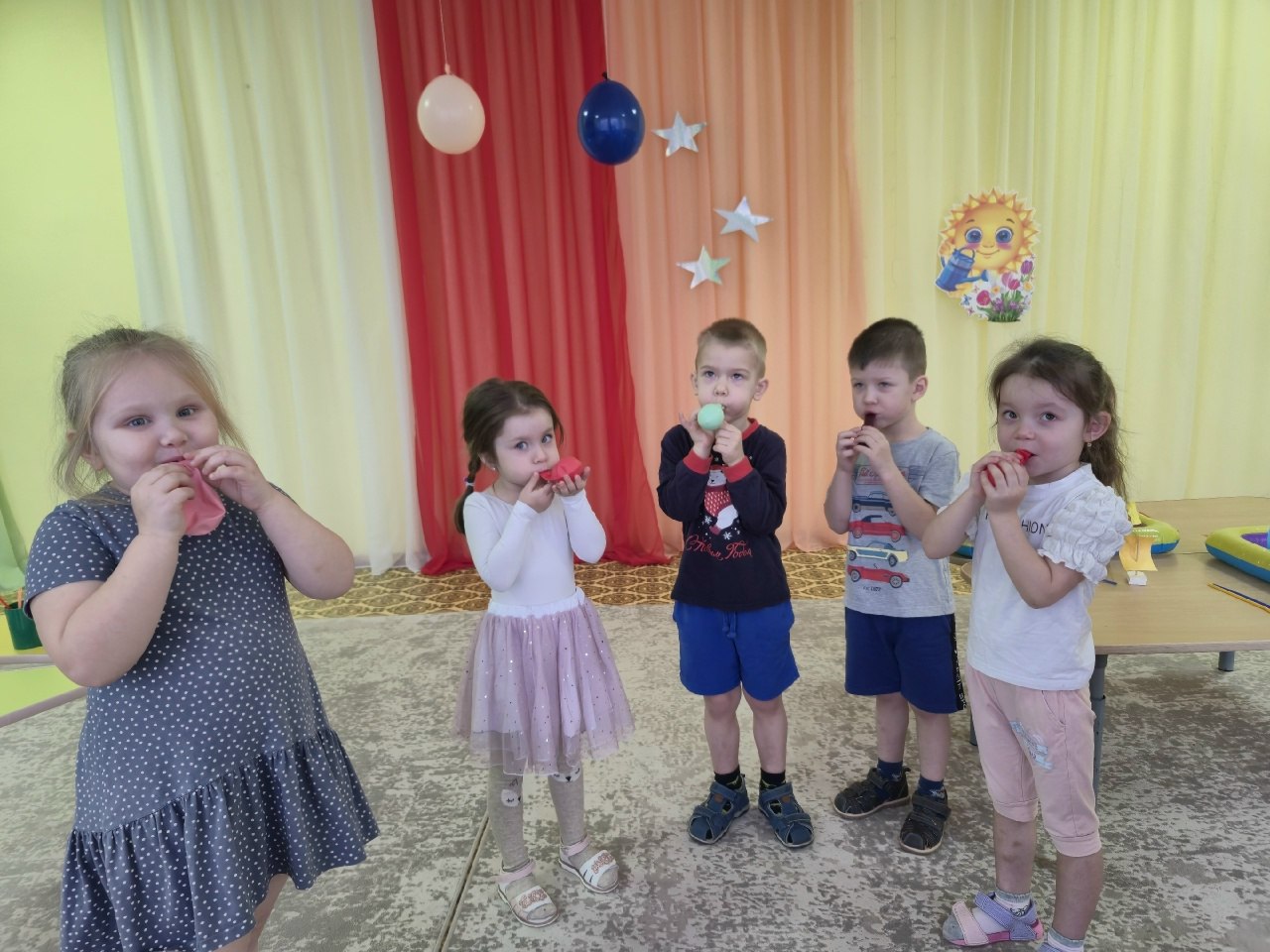 Юные исследователи убедились, что воздух может передвигать предметы, когда помогали путешественнику подгонять кораблики с помощью трубочек. Надувая воздушные шарики, ребята узнали, что воздух не имеет своей формы, а приобретает форму того предмета, в котором находится. Как показал опыт, руками пузыри не надуешь, а с помощью стаканов с водой и трубочек наглядно увидели появление пузырьков при выдыхании воздуха и узнали, что внутри нас и всего живого есть воздух. В конце занятия ребята получили в награду эмблему «Знатоку окружающего мира».