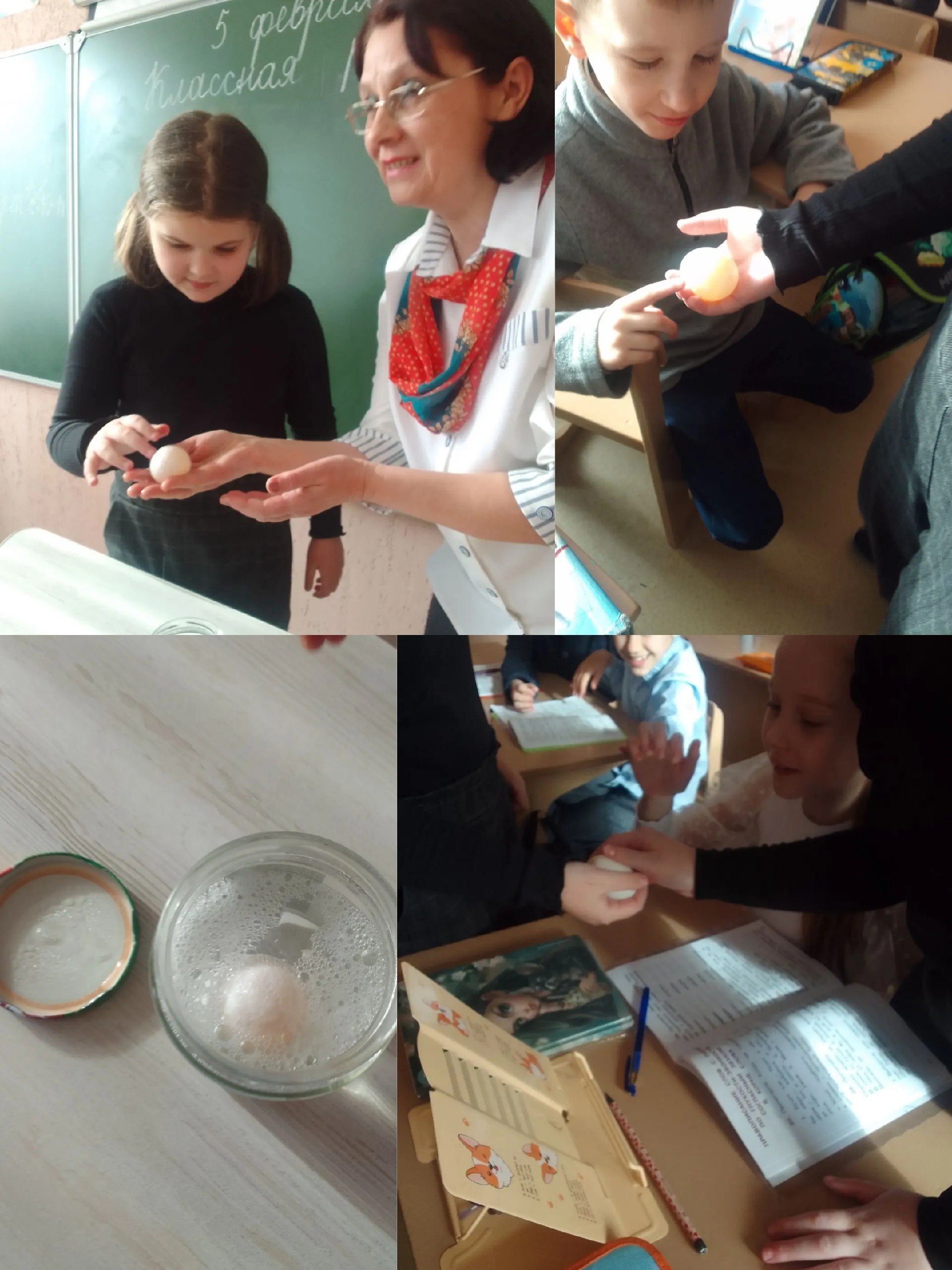 Во втором классе под руководством педагога Сапачевой Елены Владимировны ребята погрузились в научные эксперименты. Особого внимания заслуживает проект активистки Кужалевой Елизаветы — она показала результаты своего эксперимента "Голое яйцо"!
