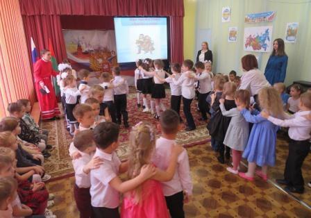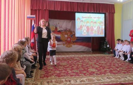 Мероприятие было направлено на знакомство дошкольников с многообразием и красотой культур народов нашей страны и началось с прослушивания гимна Российской Федерации.