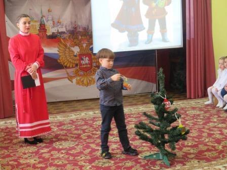 Вспомнили дети и о традиции украшения ёлки на Новый год. В этот день дети украсили ёлочку шарами с традиционными орнаментами народов нашей Родины. Шары были сделаны ребятами накануне в творческих мастерских.
