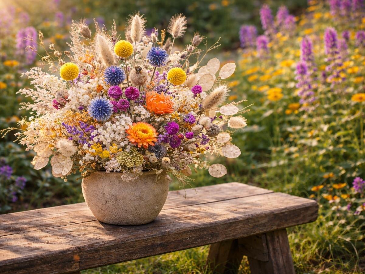 Сухоцветы — это растения, которые после сушки почти не теряют свою форму и окраску, а иногда даже сохраняют лёгкий приятный аромат. Эти растения ideal для зимних букетов и интерьеров, так как многие из них можно вырастить прямо в саду, тем самым объединяя летнюю декоративность и зимнюю флористику.