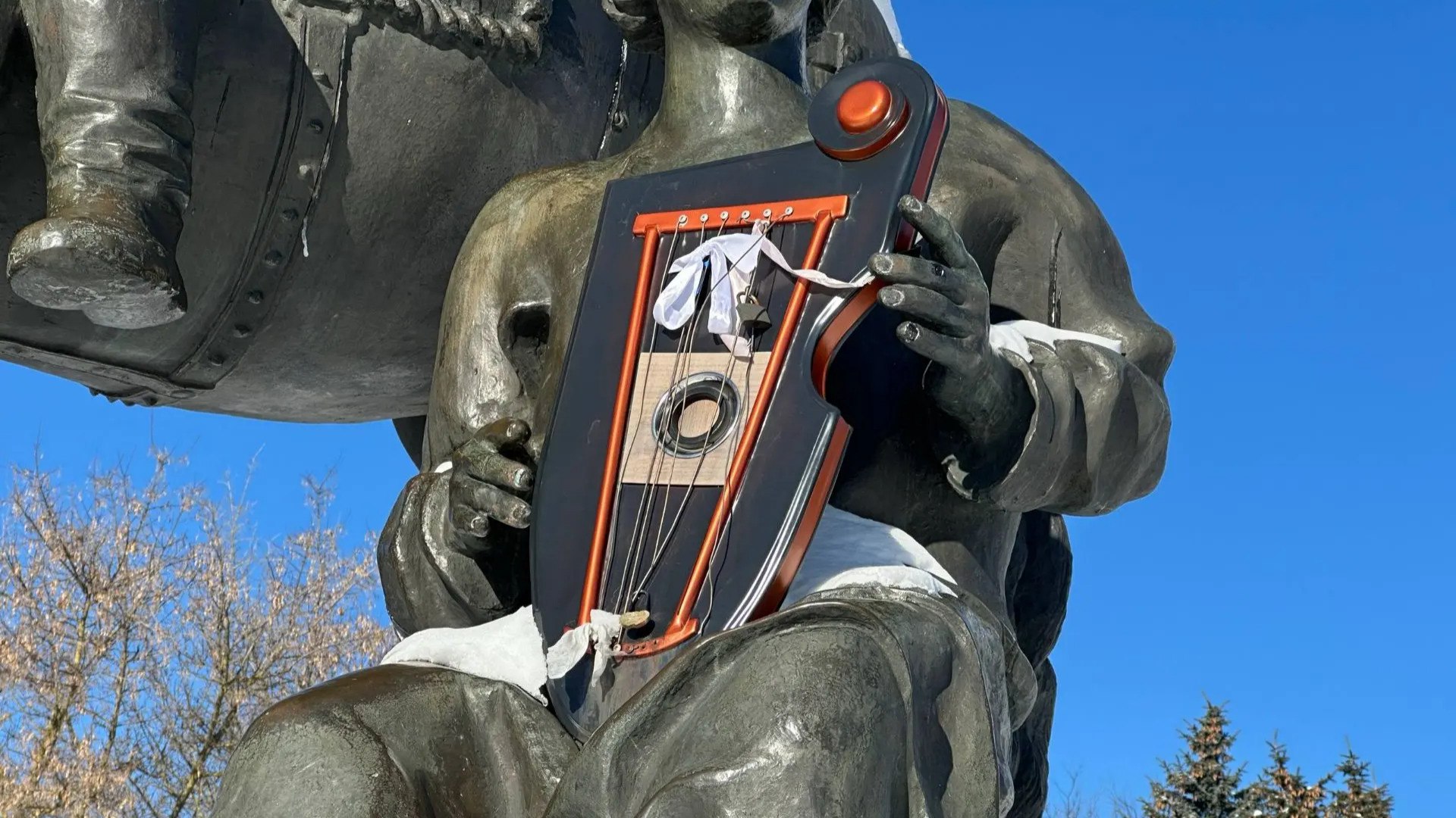 Струны гуслей легендарного певца-сказителя повредили вандалы в Брянске