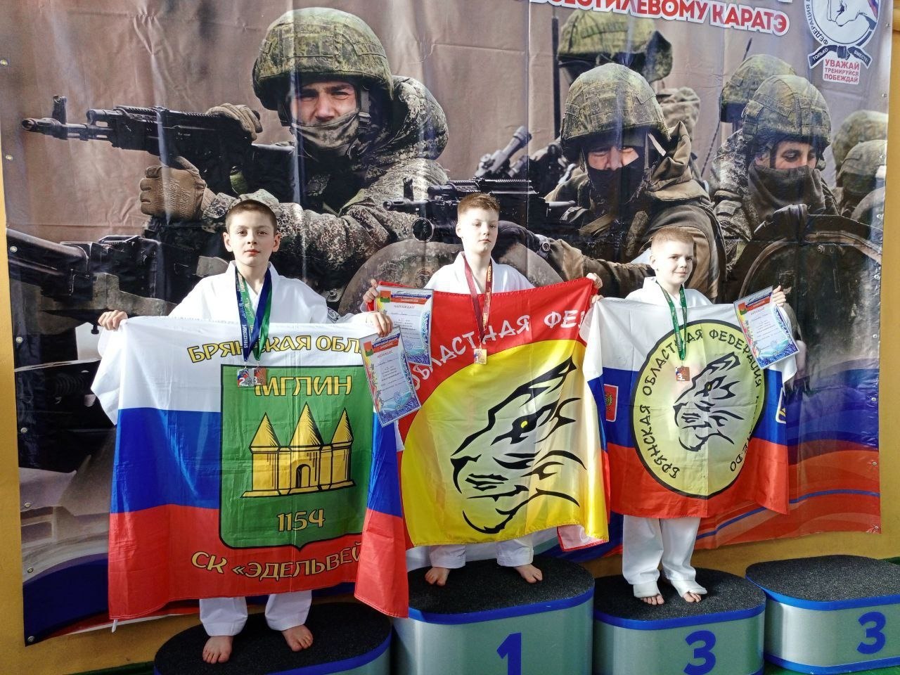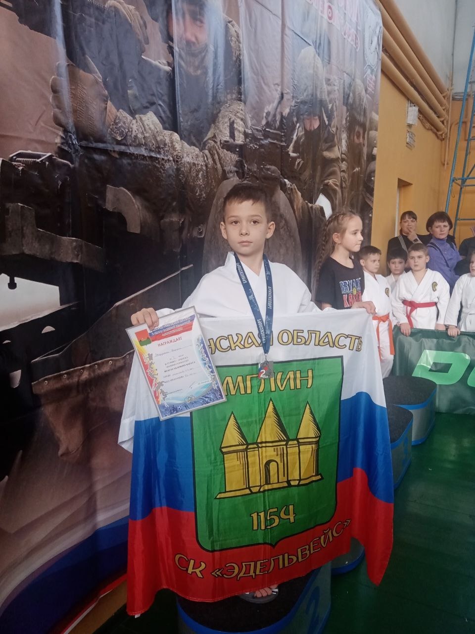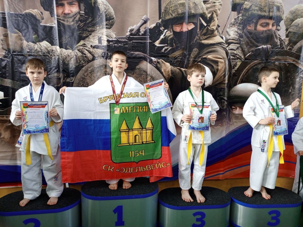 На следующий день, 8 февраля, Мглинская команда продолжила выступление на другом турнире в г. Брянске, посвященном участникам СВО. К ребятам присоединились ещё 4 спортсмена команды. Соревнования начались с выступления самых маленьких спортсменов. В категории 6-7 лет выступил Марухленко Никита. Это был его дебют на областных соревнованиях. Никита занял 3 место в ката, 2 место в кумитэ. Следующими выступили спортсмены категории 8-9 лет – Березинская София, Добыш Максим и Куликов Михаил. Софии и Максиму немного не повезло, но есть над чем поработать. У Михаила 3 место в кумитэ. Затем выступили – Игонтов Алексей и Новиков Егор. У Алексея 1 место в ката и 3 место в кумитэ. По итогам двух соревнований у него 3 первых места и одно 3 место. Егор выступил достойно, занял 3 место в ката и уступил в финале 2 место в кумитэ.