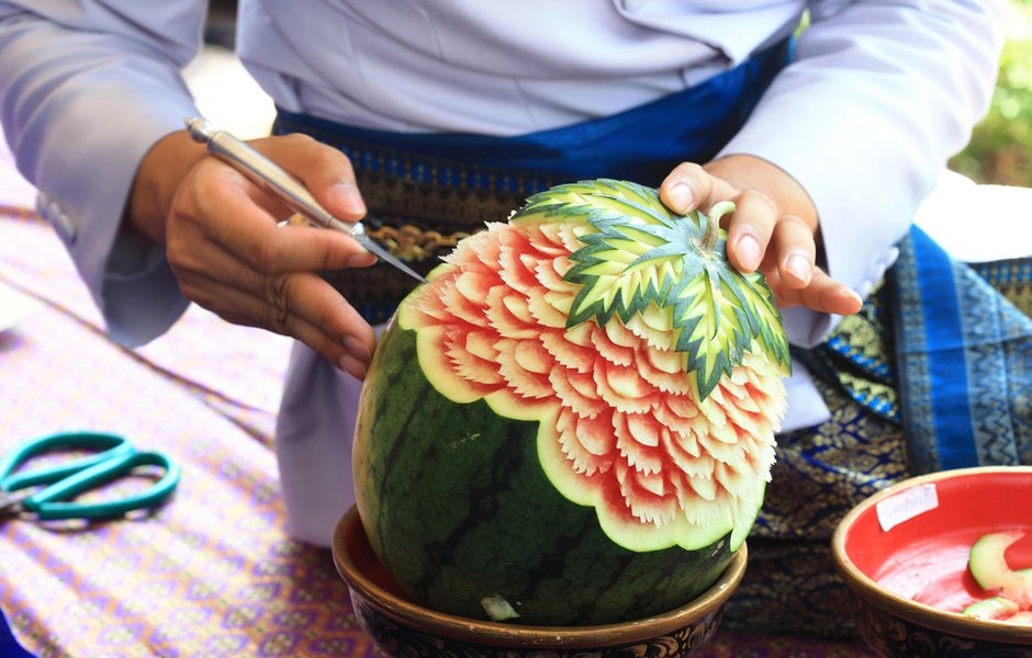 Карвинг — это искусство художественного вырезания из фруктов, овощей и даже шоколада, которое делает каждое блюдо настоящим произведением искусства. Это традиция, которая пришла к нам с Востока, где даже повседневные продукты могут выглядеть празднично и замысловато.