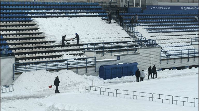 «Динамо» готовится к футбольной весне: стадион растапливают и чистят от снега