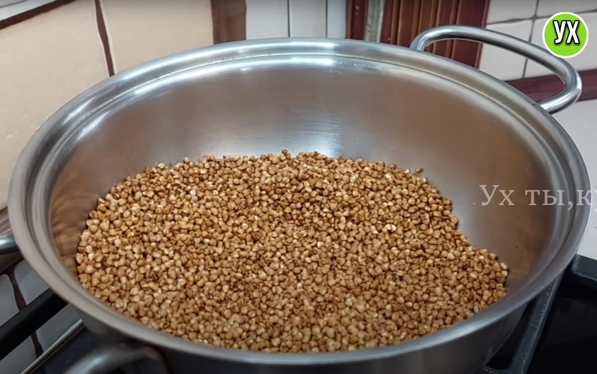 Первым делом гречку следует хорошо промыть под проточной водой. После этого её важно обсушить — для этого можно использовать кухонное полотенце. Дальше в сотейник ставится масло, которое нужно растопить на среднем огне. В момент, когда масло начнет шипеть, в него добавляется гречка, которая обжаривается до появления легкого потрескивания, что придаст ей особый аромат.