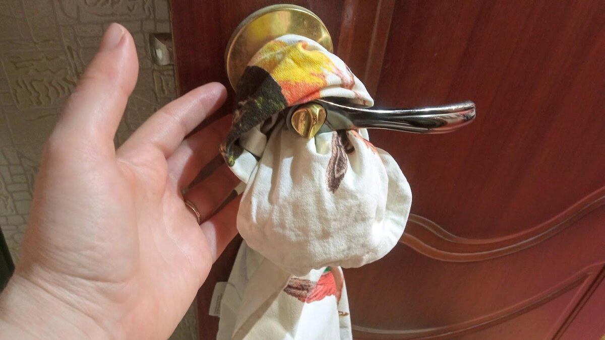 Родственники, увидев такую практику, сначала были удивлены, однако быстро приняли этот способ в свою повседневную жизнь. Теперь они тоже используют влажные ткани на дверных ручках. Главное запомнить: размещать их так, чтобы они не соприкасались с самими дверями, это обеспечит максимальную эффективность метода.
