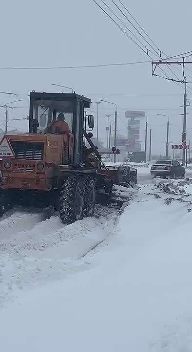Белое безмолвие Vs брянские коммунальщики. Специалисты дорожного управления отважно противостоят стихии. Сильная метель, обрушившись с ночи на город, не стихла до сих пор, засыпая улицы и дворы снежной крупой.