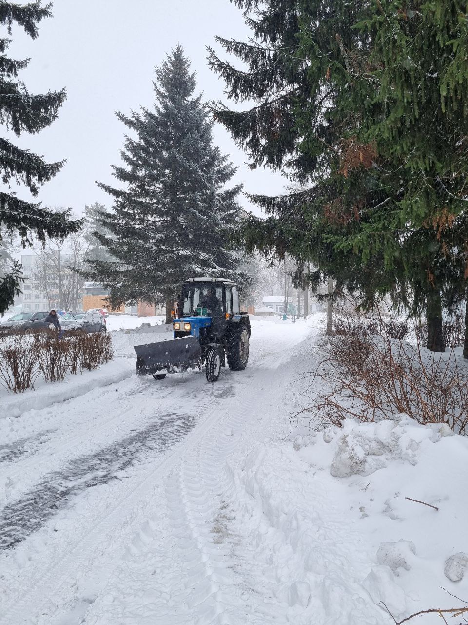 В настоящее время техника МТЗ 80 и МТЗ 82 сосредоточена на уборке дорог в поселке Мичуринский, расчищая пути от снежных заносов.