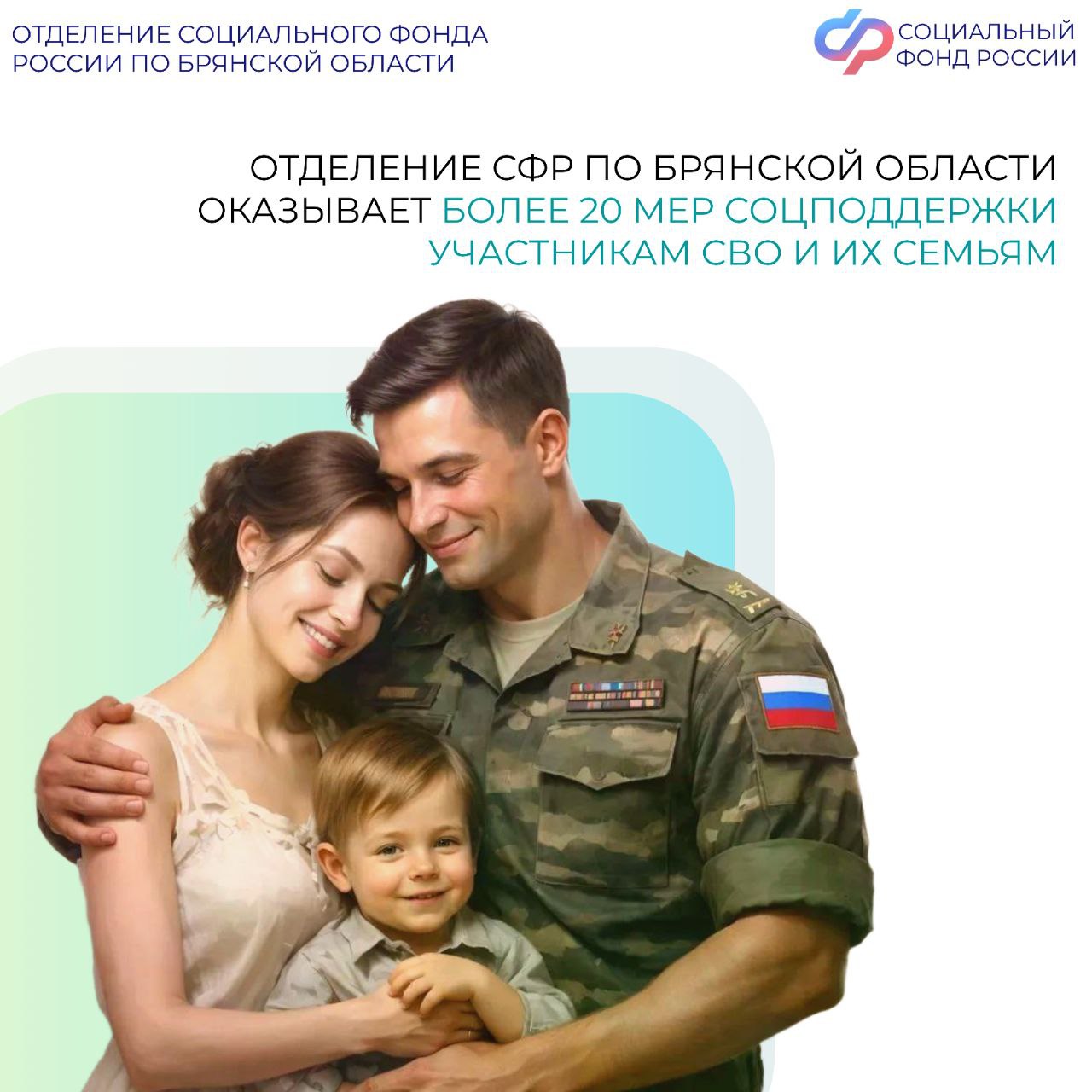 Меры поддержки по линии Отделения Социального фонда России по Брянской области предусмотрены и для членов семей военнослужащих.