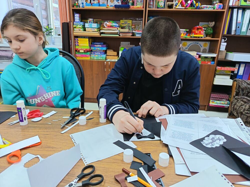 16 февраля в рамках клуба «Мастерилка», действующего в детской библиотеке, для детей, посещающих КЦСОН г. Клинцы и Клинцовского района, прошел мастер-класс «Примите наши поздравления!», посвященный Дню защитника Отечества.
