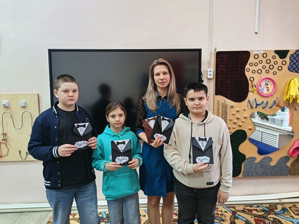 В ходе занятия, присутствующие познакомились с историей возникновения праздника, его важностью и значимостью. Проявив фантазию и творчество, со старанием и большой любовью, ребята сделали красивые открытки, которые подарят своим родным и любимым папам, дедушкам, братьям.
