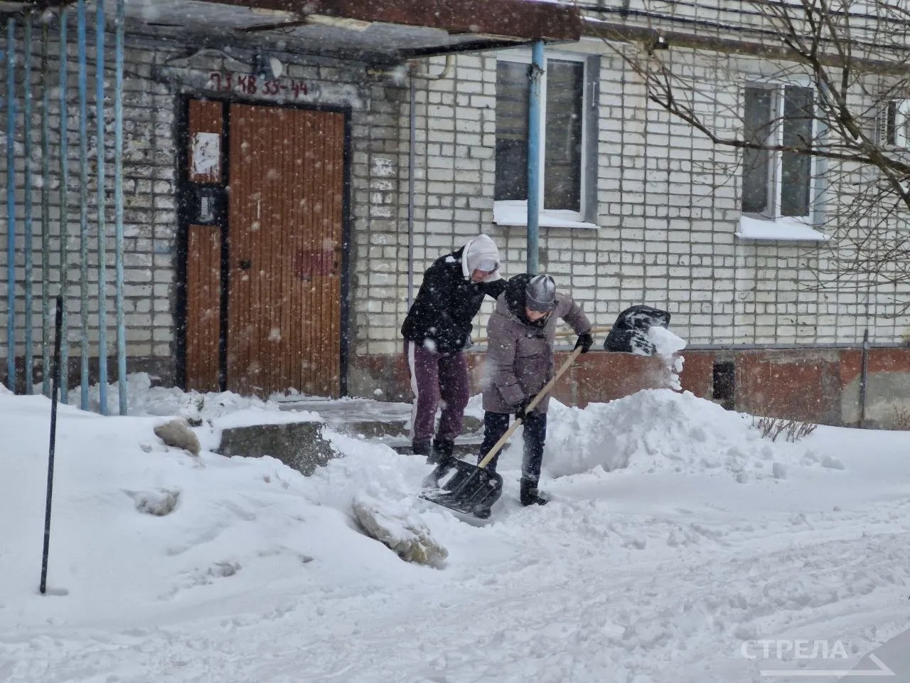 В микрорайоне Шибенец города Фокино дворники чистят территории подъездов, в частности, дома №22 по улице Зверева. Вооружившись лопатами, женщины убирают снег для удобства и комфорта жильцов.