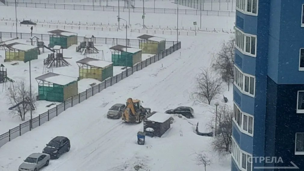 Так, была замечена спецтехника, которая чистила снег на придомовой территории в районе старого аэропорта на улице Советской.