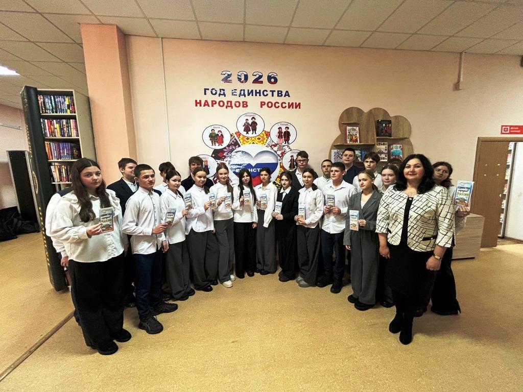 Ребятам были подарены буклеты "Год единства народов России", разработанные сотрудниками библиотеки.