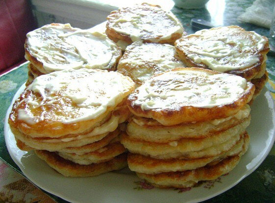 Например, у меня всегда срабатывает: налила 200 мл кефира, щепотку соды — и тесто «живёт» в сковороде.