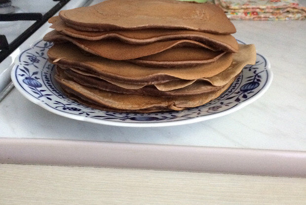 Разделите тесто пополам и в одну часть добавьте 2 столовые ложки какао. Если хотите полностью шоколадные панкейки — попробуйте 3–4 столовые ложки. Так вы получите два настроения на одной сковороде.
