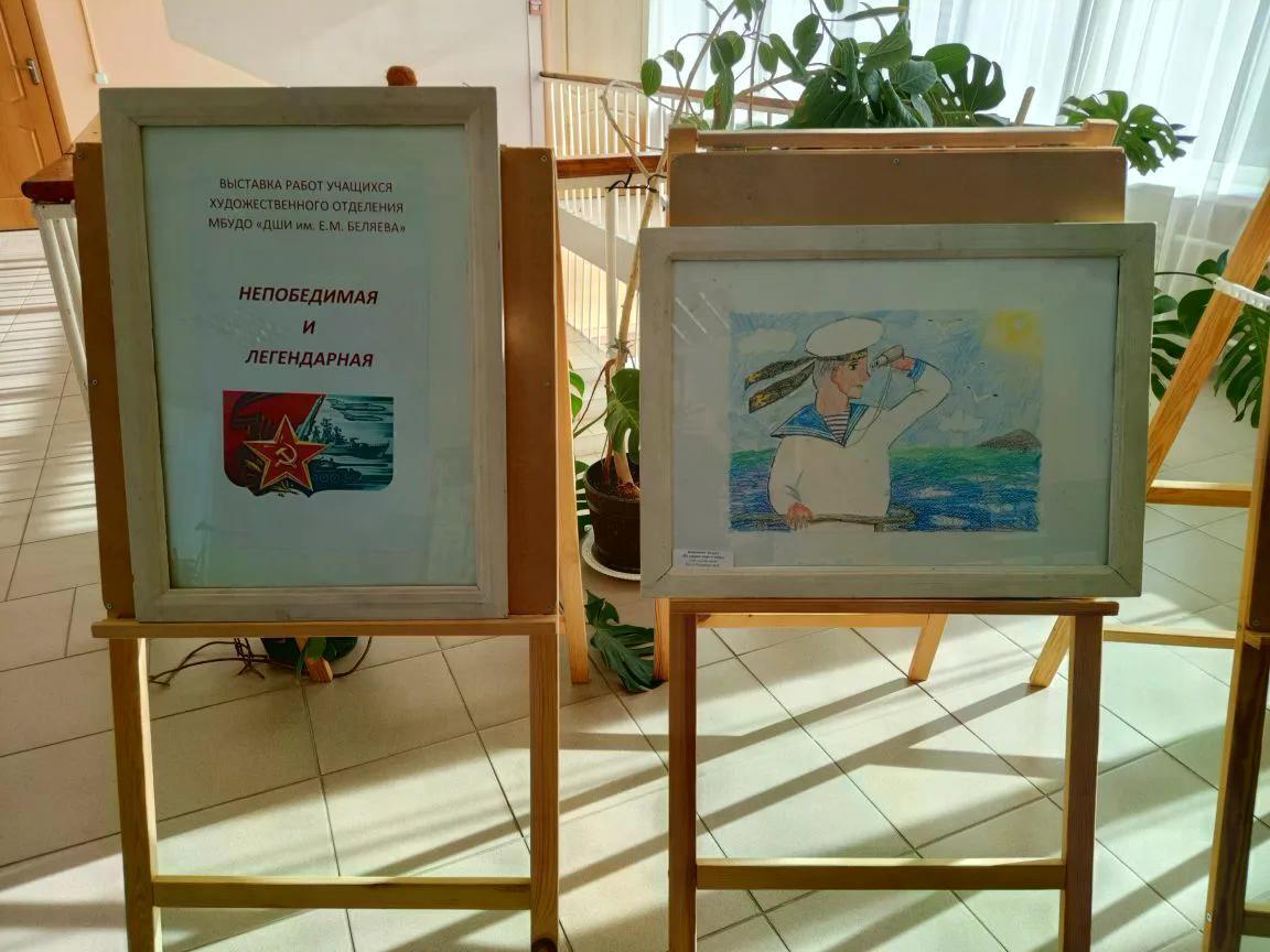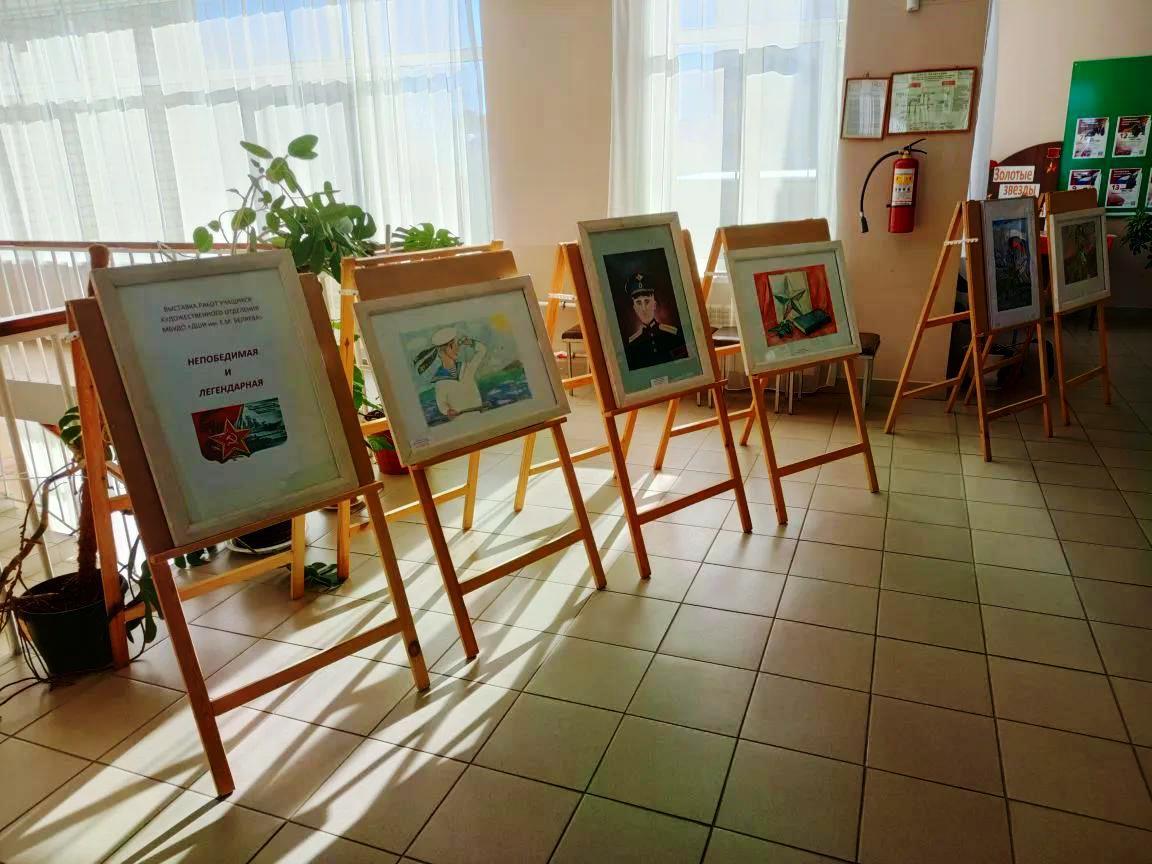 В преддверии Дня защитника Отечества в Детской библиотеке г. Клинцы открылась выставка учащихся художественного отделения «Непобедимая и легендарная». Экспозиция посвящена теме подвига, мужества и памяти.