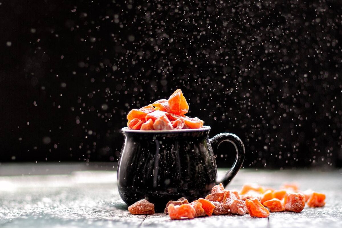 Финишные штрихи: После сушки перекладывайте цукаты в контейнер и посыпайте сахарной пудрой с корицей для улучшения вкусовых качеств.