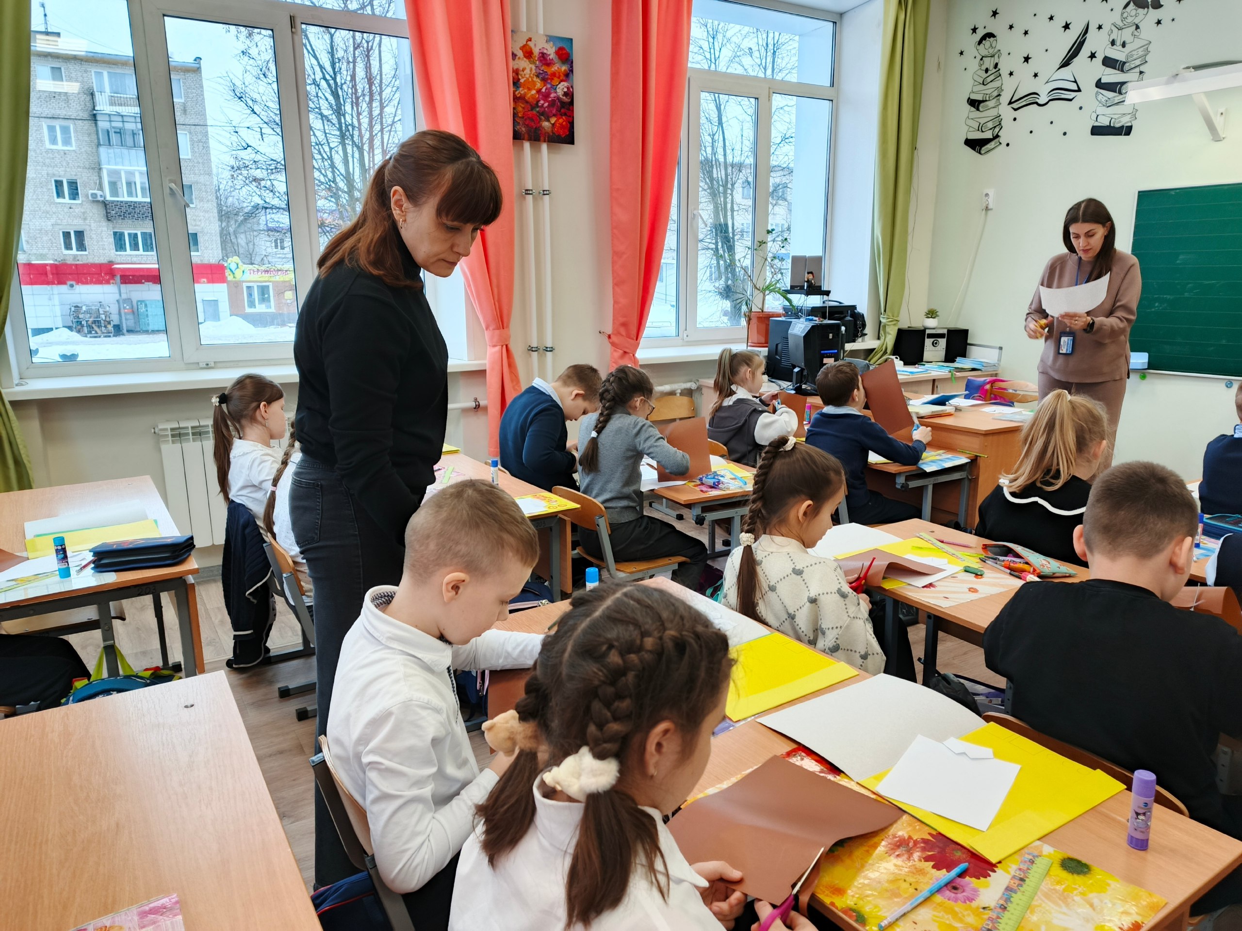 Юным участникам мастер-класса было предложено изготовить своими руками поздравительные открытки для ветеранов и участников СВО. Школьники с радостью согласились, они понимают как важно для наших защитников участие и поддержка родных и близких.