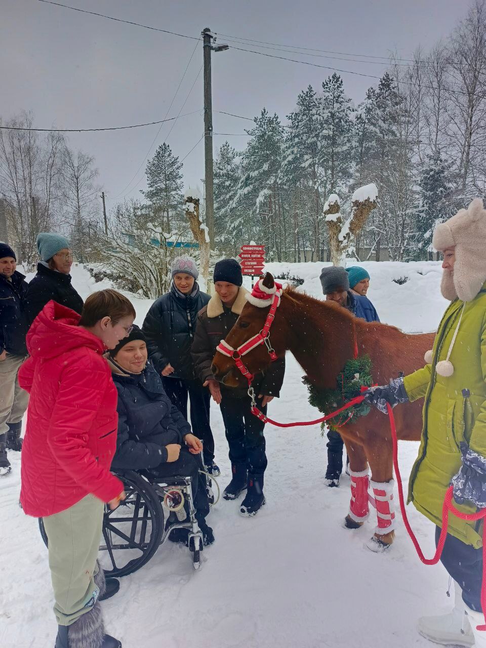 По китайскому календарю в свои права вступил год Лошади. В гости к получателям социальных услуг Дарковичского дома социального обслуживания привезли живой символ этого года. Лошадка Лакомка из Пони-клуба с удовольствием позировала и угощалась лакомствами из рук проживающих.