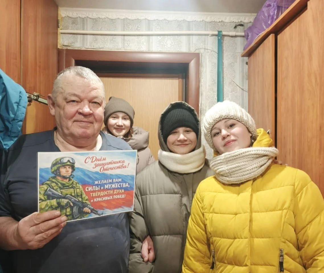 Активисты Движения Первых МБОУ Хмелевская ООШ совершили акцию «Поздравь защитника Отечества» с праздником 23 февраля.